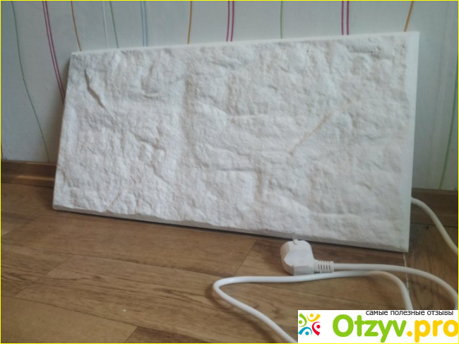 ТеплоЭконом красиво сморится в комнате: стильно белый, текстурный — он словно модное оформление стены. Да, мы подвесили его ближе к стене, все же, там удобнее, чем ставить просто на пол.