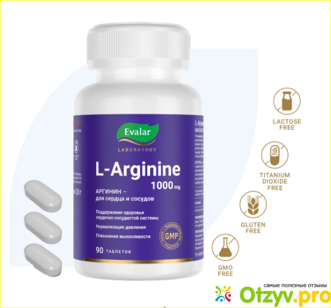 Полезных свойств много. Пил он по 3 таблетки в день, получается 3000 мг L-аргинина в день.