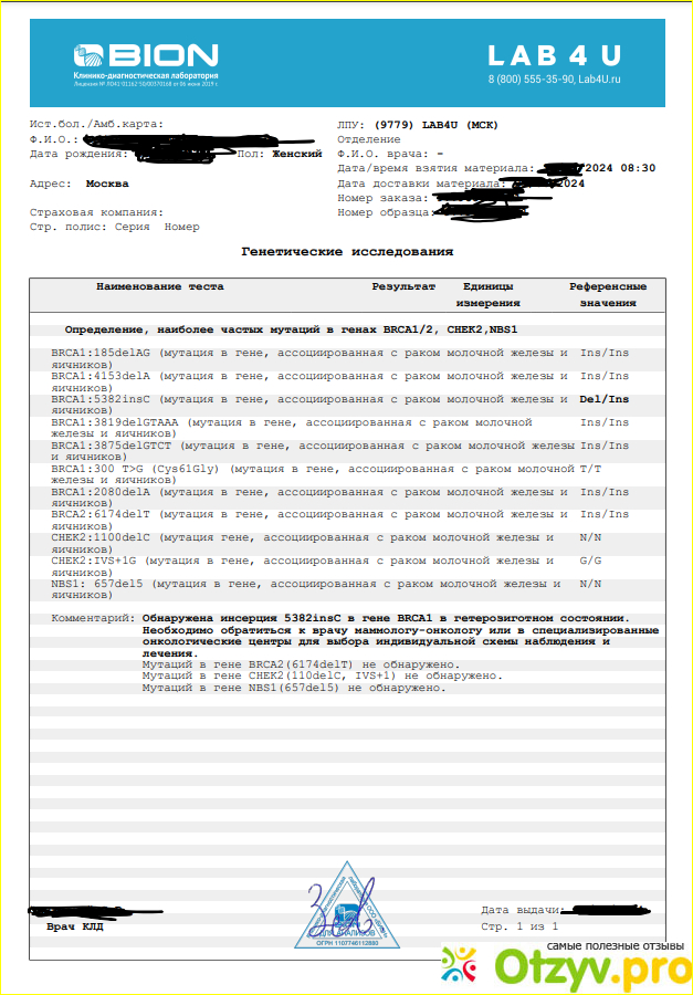 И благополучно забыла о нем. Ну бывает такое, закрутилась. Когда получила смс с напоминанием, поняла что приехать на другой конец города не смогу ни при каких обстоятельствах. Деньги заплачены были небольшие, но тем не менее я решил позвонить в службу поддержки. Девочка очень приятная, меня выслушала и без проблем сделала отмену заказа. Деньги, заплаченные за него, остались на моем внутреннем счете - в личном кабинете. А на анализ я еще раз записалась неделю спустя. Это я все в чему? Несколько раз слышала от коллег и знакомых, что они опасаются пользоваться лаб4ю из-за этой предоплаты через сайт. Товарищи! Это реально удобно, быстро и безопасно. В случае опоздания, вы не останетесь без своих кровно заработанных. Оказывается, что можно даже чеки запросить для подтверждения налогового вычета на лечение... Если вдруг кому нужно. Лично я очень довольна работой этой лаборатории: никогда нет очереди, анализы берут аккуратно, результаты в течение дня-двух готовы. Рекомендую всем.
