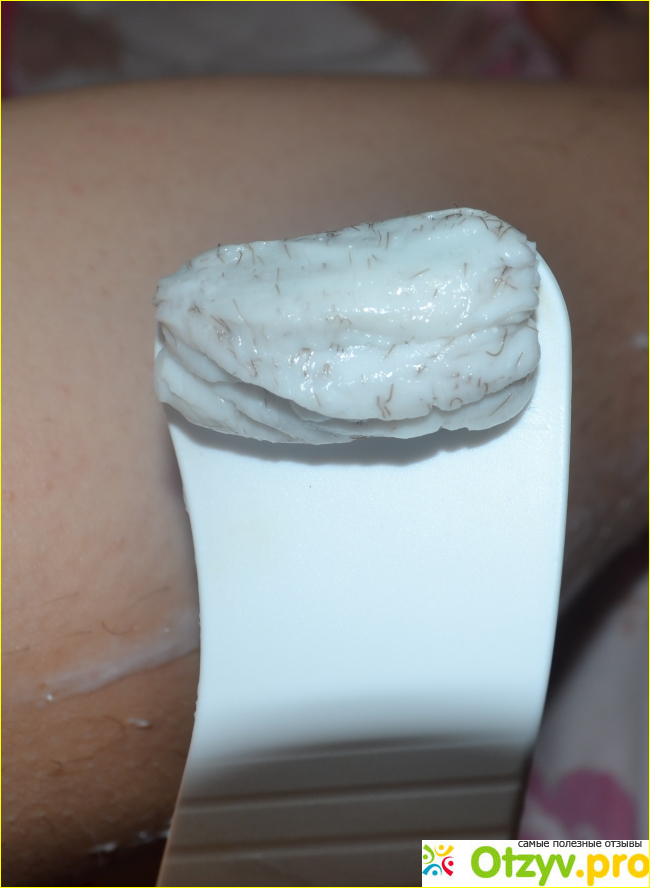 Кстати я через две недели решила попробовать снова провести процедуру, подумала вдруг что то неправильно сделала, да и длина волосков была маленькая где то до одного миллиметра, но в этот раз уже наложила крема щедро, толстым слоем. Просидела пятнадцать минут попробовала снять, а там все равно ноль результата, причем полоски даже не смягчились, как были жесткими так и остались, пришлось опять браться за бритву, и терпеть в результате раздражение.