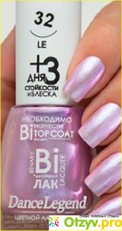Лак достаточно приличный, скорее предназначен для праздников, к нему прилагается удобная кисточка, розово-сиреневатого цвета, однако сам по себе не особо стойкий, я накрасила его в 2 слоя, ложится ровно, высох достаточно быстро, продержался три дня. Наверное, надо наносить на базовое покрытие с защитным топом. Цвет на ногтях получился красивый, переливается из голубого в розовый, коллеги обратили внимание и стали расспрашивать что это за фирма и где его можно купить.