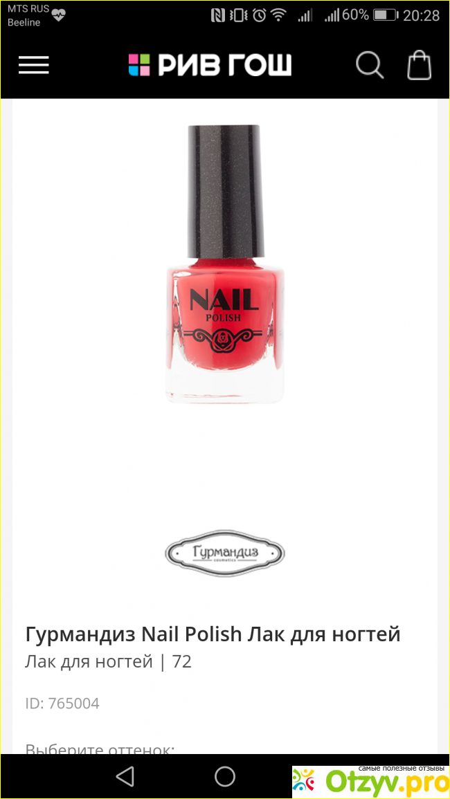 Отличный лак марки "Гурмандиз" российского производства: хорошо наносится стойкий, быстро сохнет, долго не высыхает во флаконе - в общем все, чем гордятся зарубежные производители и накручивают аховые ценники (не всегда при этом оправдывая ожидания). Цветовой ряд достаточно широкий - около 20 цветов. Благодаря тому, что марка отечественная и не разрекламированная, при высоком качестве необыкновенно низкая цена: от 60 до 90 рублей.
