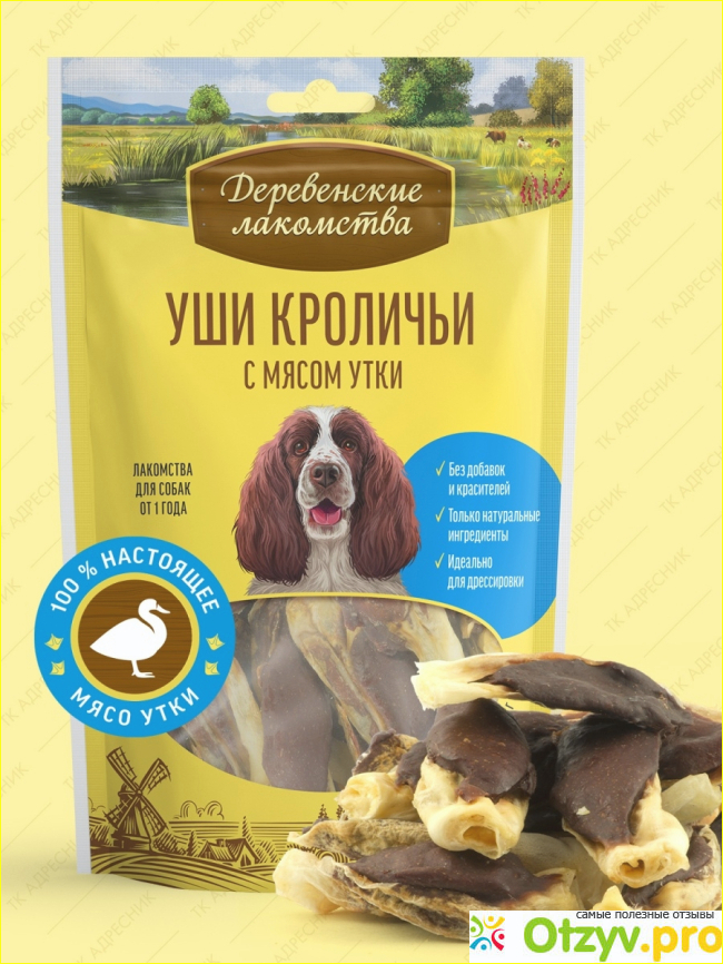 Очень полюбился Холистик Премьер, но сейчас еще активно покупаем и разнообразные лакомства от этого же бренда. Из последних находок – Уши кроличьи с мясом. Это не просто вкусняшка, а полезное лакомство для ухода за зубами. Ешь его и очищаются зубы. Вот бы мне такие пироженки и конфетки, от которых не толстеешь и зубы белеют) Перед покупкой почитала состав. Как обычно Деревенские лакомства не подкачали. Состав очень простой: уши кроличьи, утиное мясо, крахмал. Белка 35% на 100 г продукта. Никаких химических добавок, консервантов и прочих вредностей. Аромат натуральный. Лакомство имеет необычную форму: вытянутые уши кролика с упругой консистенцией. Это комбинация мягкого и твердого, за счет структуры собаке приходится потрудиться, чтобы прожевать лакомство, и зубки очищаются от налета, плюс это отличная профилактика зубного камня и в качестве перекуса хорошо подходит за счет питательного белкового состава. Пока что успели умять 2 пакетика. У пакетиков кстати, как и у пачек с сухим кормом от этого производителя, есть зип-лок, за счет чего удобно хранить продукт. Как только я достаю пакетик с лакомством, Нокс сразу же бежит ко мне. Ест с удовольствием, долго жует, и я вижу, что ему действительно нравится. У меня пес молодой, с зубами все ок, но для профилактики обязательно буду брать и дальше. Плюс собаке лакомство нравится, он счастлив, а значит и я тоже. Покупаю вкусняшки в зоомагазине у дома. Не всегда они там в наличии, кстати. В других ближайших маркетах такого продукта не видела.
