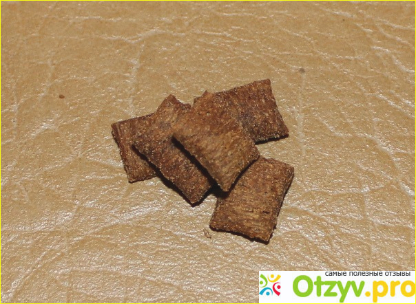 В упаковке маленькие подушечки коричневого цвета. Вроде не слишком жесткие, но кошка их не хочет разгрызать. Проглатывает прямо целиком. Да, нет... даже не проглатывает, а буквально снюхивает. Если положить ей десяток штук, она их слопает примерно за пару секунд. И просит еще. Покупала такие же, но со вкусом курицы - ест одинаково охотно. Что кошку привлекает в этих подушечках, понять не могу. По запаху они похожи на обычный сухой корм не самого хорошего качества. В принципе, и по виду тоже.