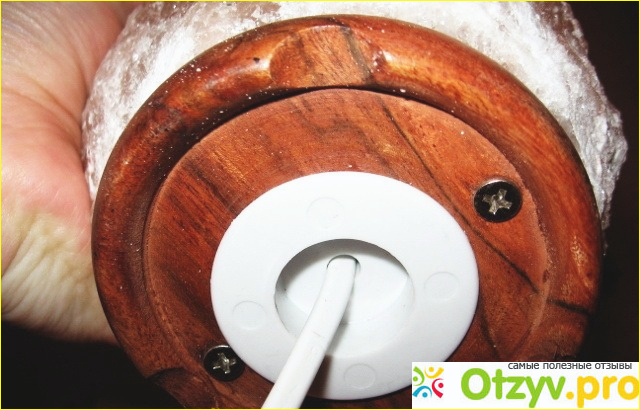 КОНСТРУКЦИЯ. Соляной плафон установлен на подставку. Внутри расположена лампа (мощность 15 Вт). Ее можно легко заменить.