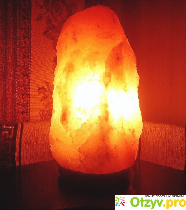 Данная лампа светло-оранжевого цвета, который мягко рассеивается по комнате. Общий вес лампы около 3-х килограмм. При прикосновении, на руках остается соль, да и на вкус – тоже соленая)