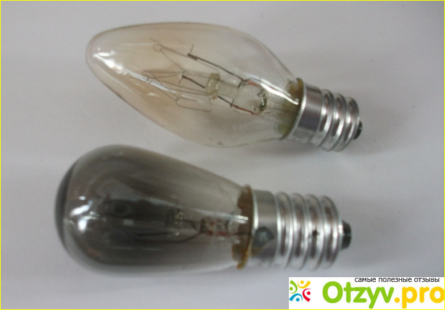 Маломощные, но света хватает, а такие меньше греются. И диаметр цоколя у них меньше: обычная лампочка имеет цоколь Е27, а здесь Е14 или Е12, в разных моделях холодильников можно встретить и такой и такой, (намного чаще встречается Е14, иначе его называют "миньон"). Такой цоколь с винтовой резьбой впервые предложен Эдисоном, цифра - диаметр резьбы в миллиметрах. Чтобы не ошибиться при покупке, нужно посмотреть инструкцию к холодильнику, там обычно указан тип этой лампы. У меня лампа с цоколем Е12.