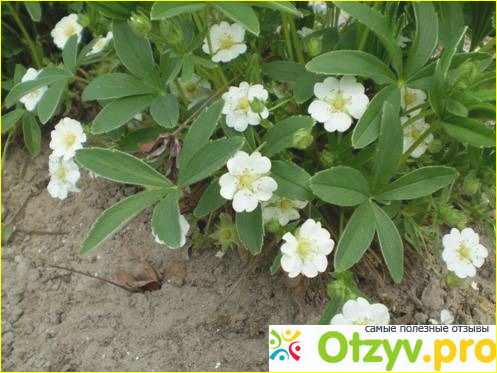 Ценность этого небольшого травянистого растения не в наземной части с нежными белыми цветами, а в раскидистом подземном корневище, хотя листья и цветы также иногда используют в комбинации с корнем. К осени в корневище накапливается масса полезных веществ, что и обуславливает огромную пользу лапчатки.