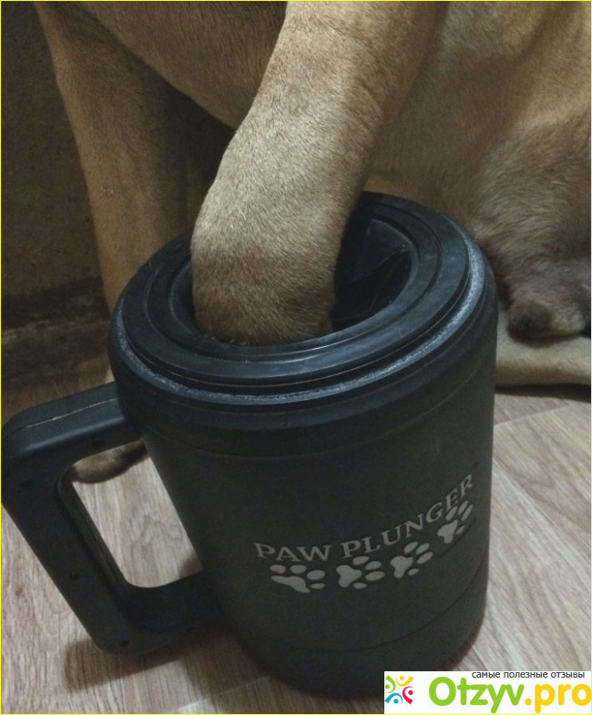 Наша собака к лапомойке отнеслась по началу с осторожностью, но довольно быстро привыкла и спокойно стоит пока не помоешь все лапки.