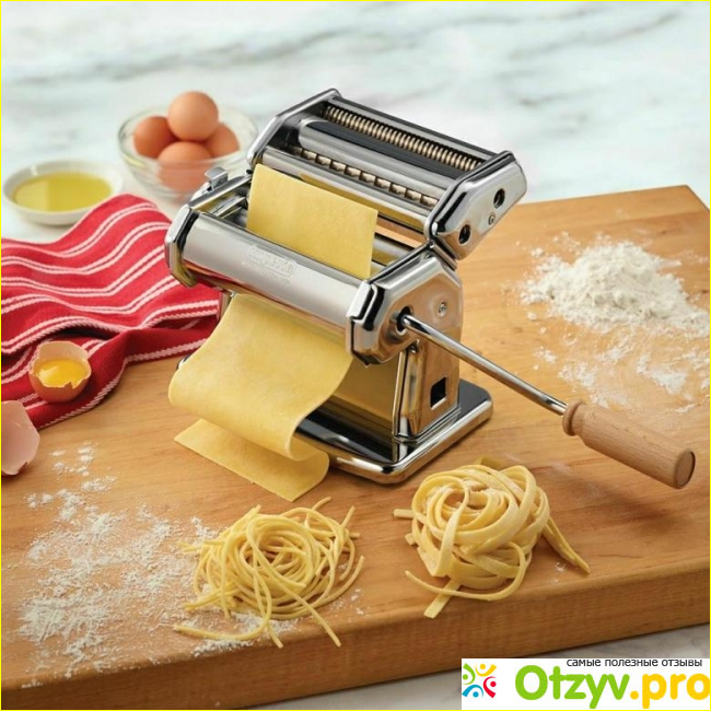 Дорогие модели оснащены дополнительными насадками, с помощью которых можно готовить равиоли, пельмени и другие сложные блюда. Я считаю, для домашней кухни достаточно приобрести ручную лапшерезку, снабженную универсальной насадкой, которая делает узкие и широкие полосы.