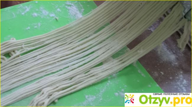 Что касается приготовления лапши в данном приспособлении так тут тоже все просто. Ставим специальную насадку. Переносим ручку на нужный режим и с такой же легкостью прокручиваем кусочек теста. Далее разрезаем получившуюся лапку по нужной вам длине. Вот и все.