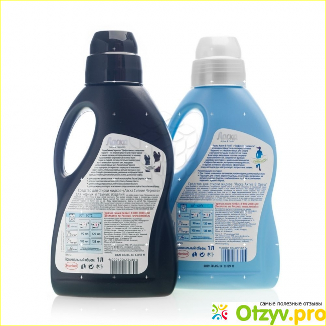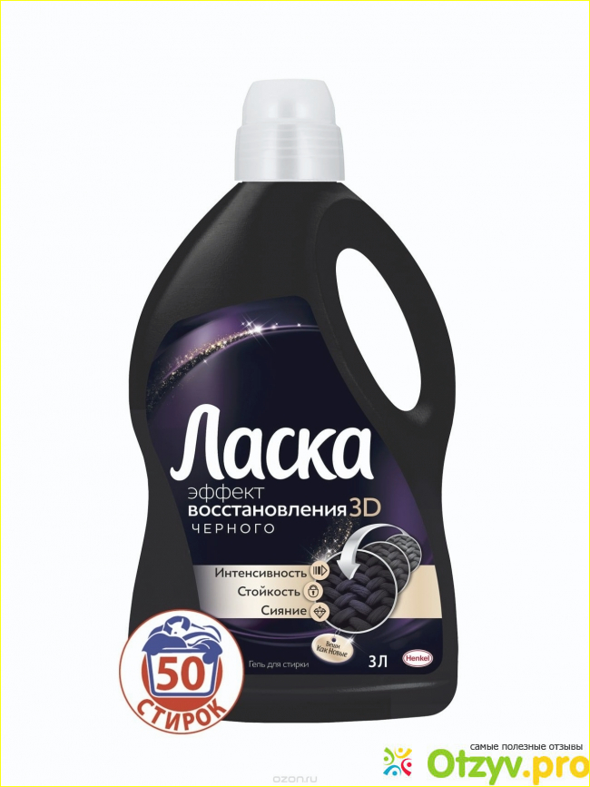 Гель Ласка для стирки прекрасно справляется с черными изделиями одежды. Его преимущество в том, что средство довольно не дорого стоит и за счет своей повышенной плотности жидкости и концентрации хватает на длительное время.