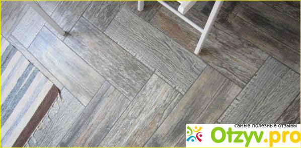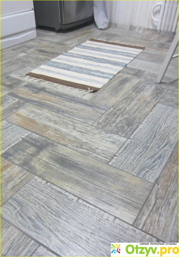 В итоге получился пол вполне удачным, когда ходишь по нему, то ноги не скользят. Вместе с тем следует отметить, что плиточный пол использованием этой плитки получается холодным, так что без тапочек по нему в зимнее время особенно не походишь.
