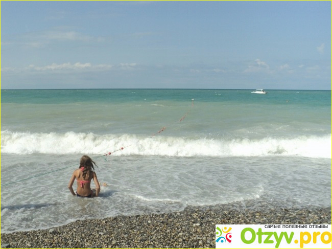 Я назвала Лазаревское развитым курортом, но это как посмотреть... Галечные пляжи ужасны, во время прилива в воде просто не возможно находиться, так как камни бьют по ногам и из моря можно выбраться в жутких синяках. Вода впрочем хорошая, прозрачная, хотя благодаря нашим людям в ней можно найти окурки, всяческие пакетики и прочий мусор. Кроме того пляж излишне многолюдный, что не нравится любителям спокойного отдыха в стиле релакс.