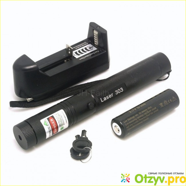 Лазерная указка Green HY Laser 303 с ремешком, она надевается на руку, имеет два ключа: одим можно заблокировать указку от детей, другим разблокировать, заряжается указка при помощи зарядного устройства для аккумулятора (зарядка держится месяц), корпус из анодированного алюминия, непрерывно указка может работать две минуты.