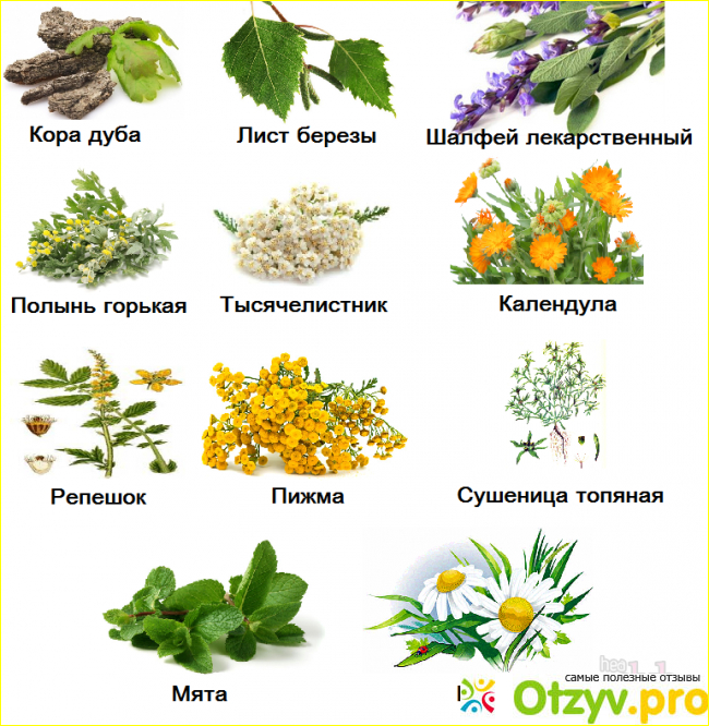 В состав такого антипаразитарного чая входят: пижма, горькая полынь, репешок, кора дуба, сушеница топяная, ромашка, шалфей, тысячелистник, перечная мята, календула, берёзовые листья.
