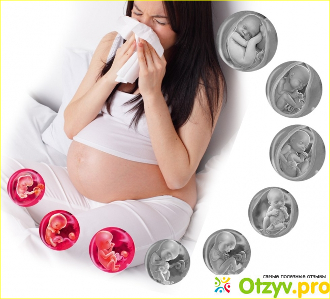 Дело в том, что насморк может быть разным, нужно понять, с чем он связан. Вы может слышали о таком диагнозе, как "ринит беременных"? Так вот, он имеет не воспалительный характер, и связан с тем, что в организме меняется гормональный фон. Отсюда и заложенность носа, и даже выделения в виде прозрачной слизи.