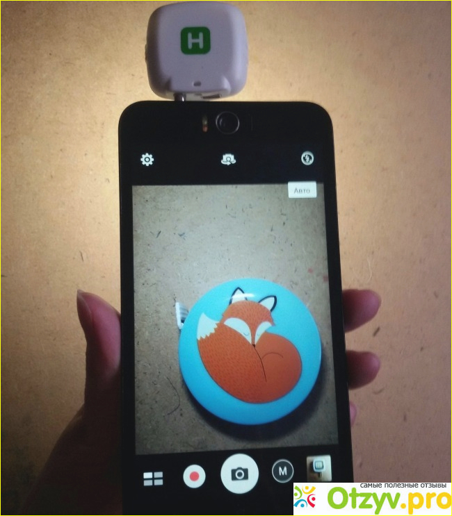 С "родным" приложением "фотокамера" на смартфоне он работает как обычный фонарь. Режим "вспышка" недоступен. Подходит для использования с фронтальной камерой.