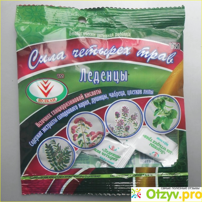 Хочу рассказать о замечательных леденцах Сила четырех трав, которые продаются в аптеках и в отделах продуктов для здоровья некоторых сетевых гипермаркетов. Это не просто сосательные конфеты, а биологически активная добавка к пище, без ГМО. Я бы сказала, что это чудо-леденцы! Благодаря содержанию в них экстрактов таких лекарственных растений, как солодка, душица, чабрец и липа, а также глицирризиновой кислоты эти сосательные конфетки оказывают противовоспалительное, противовирусное и иммуностимулирующее действие.