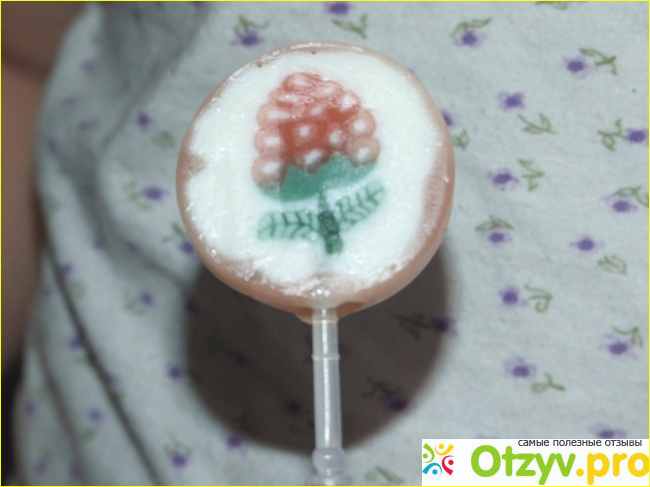 Сам леденец комфортного размера для детского ротика. На леденце есть рисунки с разными цветами. Нам досталась веточка винограда.