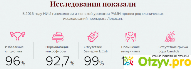 Ледисан – натуральный и при этом достаточно сильный препарат. Он направлен на решение проблем, возникающих со здоровьем женской мочеполовой системы. Он помогает преодолеть проблемы со сниженным иммунитетом, которые приводят ко всевозможным проникновениям патологических бактерий. Действие средства направлено на лечение: