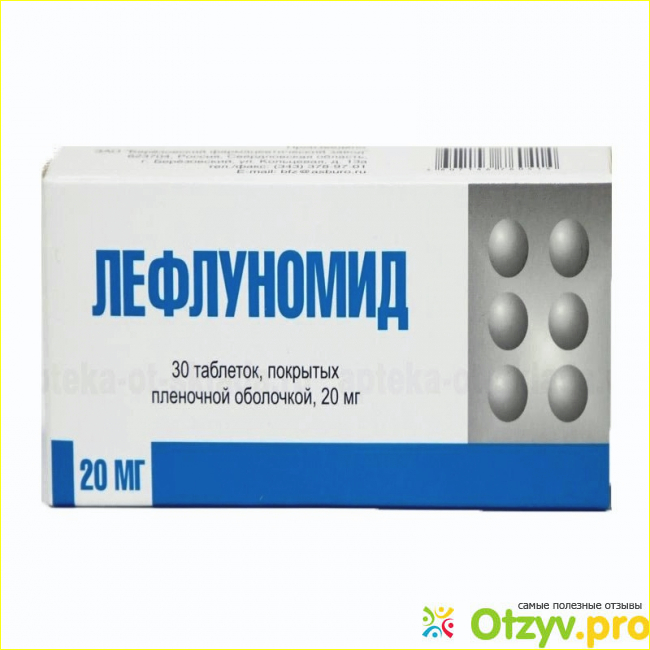 Данное лекарство относится к категории препаратов , которое оказывает антипролиферативное, иммуномодулирующее и противовоспалительное действие. Действующим веществом является одноименное химическое соединение лефлуномид в дозировке по 20 мг. Выпускается препарат в форме таблеток для приема внутрь