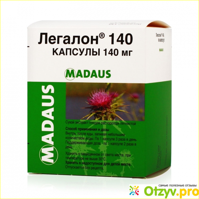 Препарат ЛегалонЛегалон является одним из препаратов на основе расторопши пятнистой. Как и для других препаратов расторопши для него характерно антитоксическое и гепатопротекторное действие. Он оказывает выраженное тормозящее действие на проникновение в клетки печени ядовитых веществ и наоборот препятствует выходу с клеток печени ферментов, в частности трансаминаз.