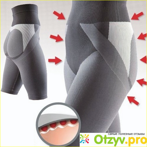 Эти легинсы с завышенной талией, отличаются от многих других тем, что не только помогают убрать лишний вес, но также улучшить внешний вид кожи. В ткани есть много турмалиновых шариков, которые создают эффект легкого массажа, благодаря чему, быстрее сбрасываются килограммы. Легинсы стягивают живот, ягодицы, икры, фигура выглядит намного стройней.