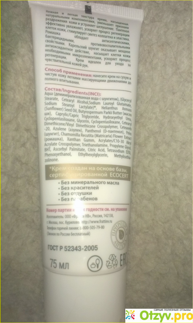 Крем обладает регенирирующим, смягчающим, антисептическим, бактерицидным , увлажняющим действием. Крем абсолютно не жирный, практически без запаха, очень нежный. Я работаю постоянно с дез. средствами плюс использую кожные антисептики, всё это катострафически пересушивает кожу моих рук. Далеко не каждый крем может привести мои руки в порядок, но крем " Шунгит" проявил себя наилучшим образом: кожа нежная, мягкая, без шелушения, воспаления, увлажненная.