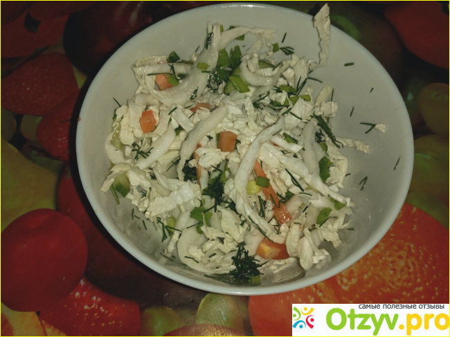 Купите в магазине: 1 помидор, 1 огурец, головка пекинской капусты, пучок зеленого лука, пучок укропа.