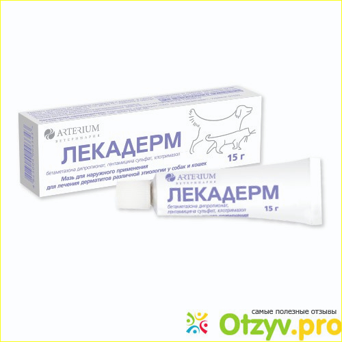 Тем более, что есть адекватные препараты, предназначенные для лечения аллергии именно у животных. Последней нашей находкой стал препарат Лекадерм. Это аналог человеческого Тридерма, но он применяется только в ветеринарии. Это трехкомпонентная мазь, в ней есть антибактериальное вещество, противогрибковое и противовоспалительное. Помогает, на мой взгляд, лучше человеческий мази.