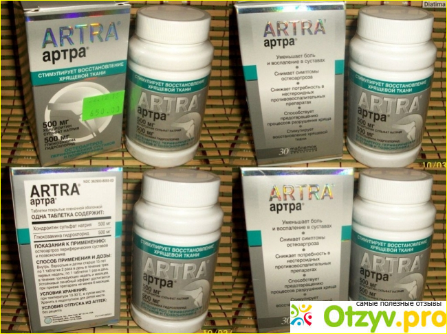 30 шт - 900-1100 р, 60 шт - 1500-1800 рублей, 120 шт - 2300 - 2600 р. Как видим лечение весьма дорогое таблетками Артра и что самое обидное - неэффективное. Средство также распространяется в интернет-магазинах, но не советую я вам прибегать к такому способу. Не знаю я, по рецепту или без отпускают таблетки, но мне без проблем продали в аптеке.