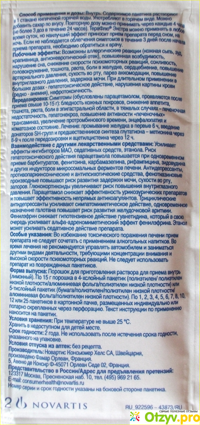 Лекарство от гриппа и простуды Терафлю, Терафлю экстра. |
