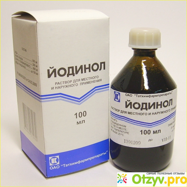 Раствором пропитывают марлевую повязку и накладывают на 12 часов. Сверху наложить фиксирующую повязку. Применяют чистый Йодинол, без разведения.