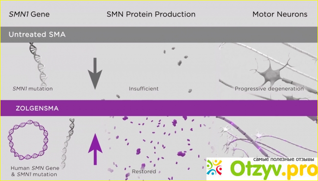 Сегодня мы с вами рассматриваем эффективное и дорогостоящее средство Золгенсма, которое вводится внутривенно только один раз на одного пациента. Действие препарата следующее: лекарство проникает в клетки внутренних органов и тканей и разрабатывает моторные нейроны, которые вырабатываю тот самый нужный белок для моторики наших мышц. Препарат одобрен в США. Дети, которые принимали данное средство, смогли самостоятельно ходить и стоять.