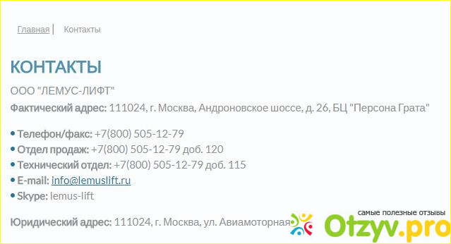 Как вы поняли из раздела "Контакты", фирма Лемус лифт находится в Москве.