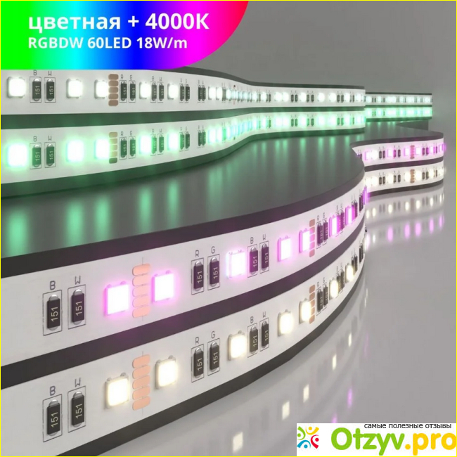 Видно, что сборка приличная, плотная плата, надёжный текстолит, диоды ровно припаяны. И главное - здесь и RGB, и белый свет в одном корпусе. Монтаж делал сам. Ленту клеил на алюминиевый уголок, блок питания прятал в нишу. Спаять пришлось, но пайка нормальная, без мучений. С контроллером сначала промахнулся, взял обычный RGB, потом понял, что нужен RGB+W, потому что здесь пятый канал - белый. Заказал подходящий, и всё заработало. Надо было сразу уточнить у продавца, а я сказал «сам знаю, потом возьму»))) Как работает