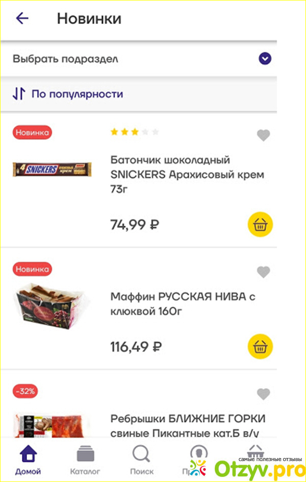 Что понравилось: в приложении есть весь ассортимент магазина, акции и скидки, некоторые товары можно было купить за рубль – по акции товары за 1 рубль.