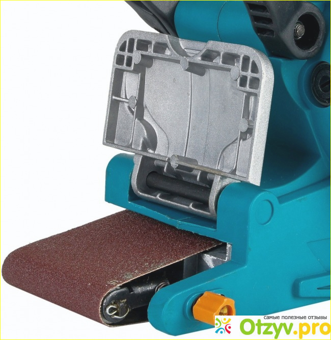 Среди положительных моментов во-первых хотелось бы отметить удобная передняя передняя ручка, которая легко регулируется. При открытом фиксаторе, ручку можно устанавливать в трех разных положениях, что позволяет подобрать оптимальное для работы фиксацию. Благодаря этому, ленточной машинкой можно легко добраться до самых труднодоступных мест и легко регулировать усилие нажатия на устройство. Во-вторых хотелось бы отметить удобный откидывающийся кожух. Открыв его можно выполнить шлифовку поверхностей под любым углом и там где другим машинкам это не по силу. с помощью этой особенности машинку я смог выполнить необходимую мне шлифовку труднодоступной поверхности. Еще из достоинств устройства хотелось бы отметить простую и быструю замену ленты. даже я который не сильно разбирается в технике смог сделать это за несколько минут.