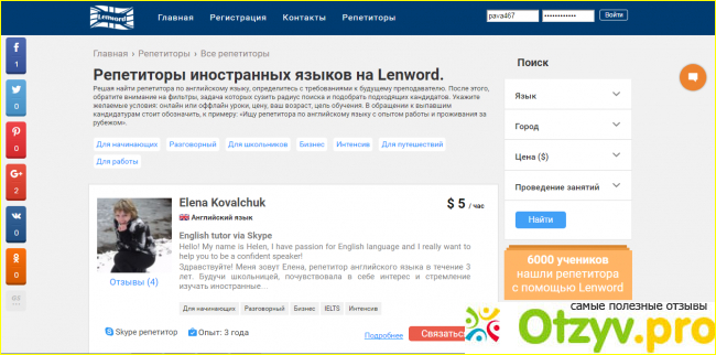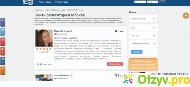 Самое главное что мне понравилось то, что пока преподаватель не проведет 1 занятие, не получит оплаты. Можно еще отметить оперативность работников сайта, так как связались со мной очень быстро.