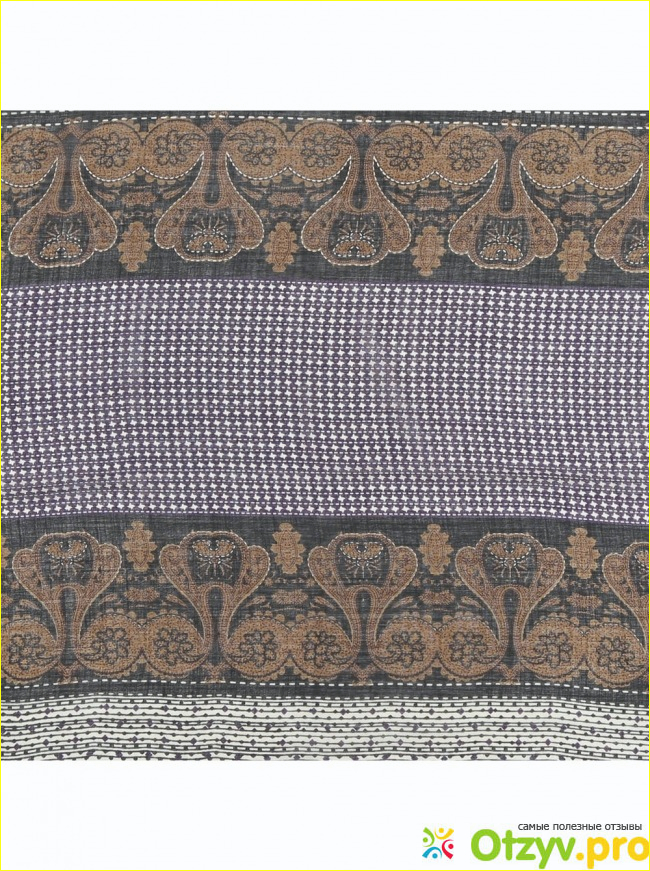 Очень красивые расцветки - на ткани четыре полосы, цвета присутствуют от белого до черного (синий, коричневый, черный, белый), можно надевать с любой одеждой.