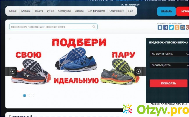 Справа вверху есть вкладочка, там вы можете выбрать, кто вы: "Вратарь" или "Игрок". И сайт автоматически выдаст вам товары, которые соответствуют вашему статуса игрока либо вратаря.