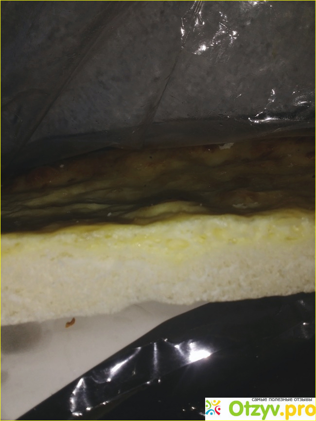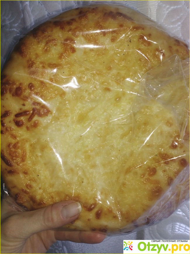 Данный продукт представляет собой весьма аппетитное хлебобулочное изделие, сверху которого достаточно толстый слой неплохого сыра. Лепёшка, на мой взгляд, весьма вкусная и сама по себе, если её есть просто так. А в качестве замены хлеба просто великолепно съедается с овощными салатами.