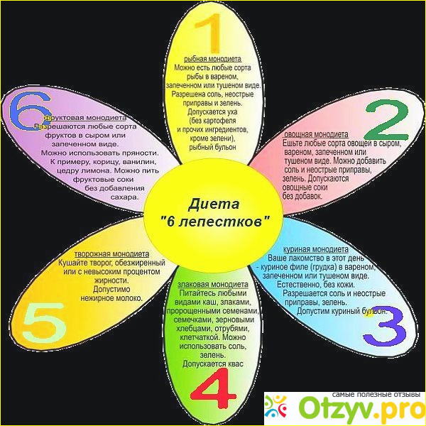 Каждый лепесток - это один день монодиеты с одним видом разрешенного продукта. В этом виде диеты: