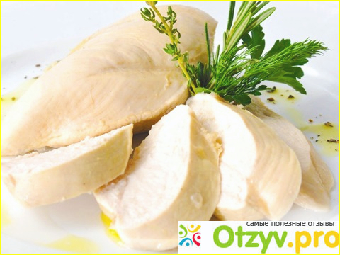 Отварная курица без кожицы, только белое мясо. Можно сделать куриный бульон, но без овощей.