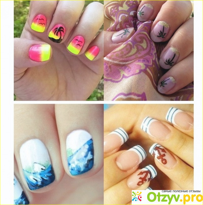 Что бы ваш рисунок остался надолго на ногтях (ведь поездки на море как минимум длятся семь дней) лучше всего сделать маникюр с помощью гель лаков. Они даржатся на ногтях примерно три недели. При чем две недели ваш маникюр будет практически идеальным, только затем ноготь начнет отрастать.