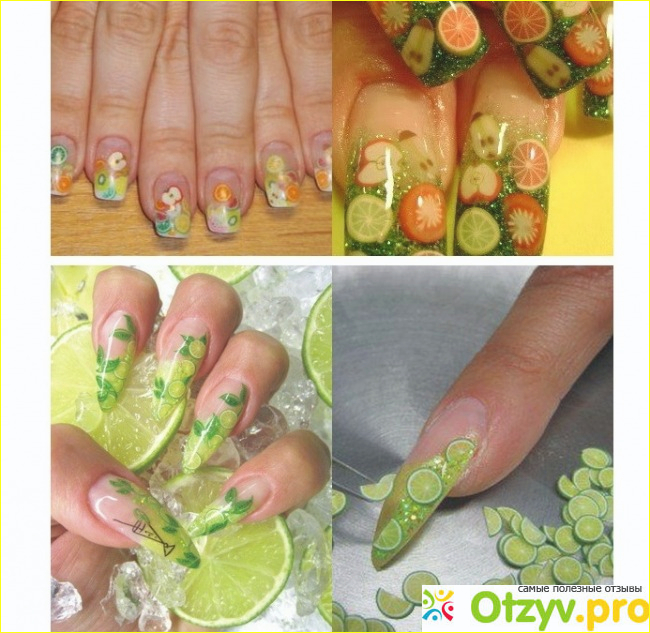Так же очень привлекательно смотрятся на ногтях всякие фруктики, вот несколько вариантов.