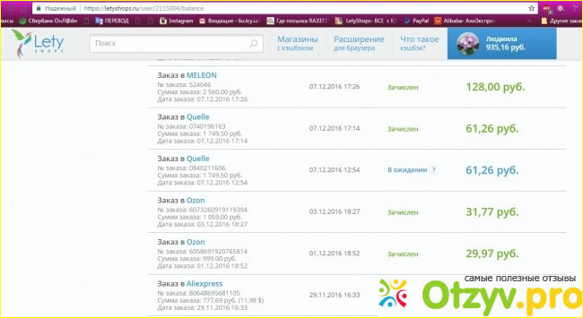 Существует множество сервисов, которые позволяют вернуть часть денег с покупок в интернете. Так называемые "кэшбэки". LetyShops также является таким сервисом. Этот сервис очень часто рекламируют, так что я думаю мало кто не знает о нём. Пользуюсь я сервисом достаточно долго, и с уверенностью могу сказать, что он не самый лучший. Например сервис Epn cashback намного лучше, но о нем в другом отзыве. Я встретился с большим количеством недостатков, такие как долгое зачисление кэшбэка на счет, минимальная сумма выплаты 500 рублей, не самый быстрый вывод средств и также процент возвращаемых денег можно найти и больше на других сайтах. Стандартный процент возвращаемых денег с Aliexpress всего 5%, а в Epn cashback 6,5%. Но существует большое количество акций и "Lety-кодов", которые позволяют увеличить процент кэшбэка. Но также есть и плюсы: достаточно удобный сайт, расширение для браузера, которое всегда напоминает о возможности покупки товара с кэшбэком и также реферальная система. Зарегистироваться можно по этой ссылке: letyshops.ru/soc/sh-1/?r=1344014