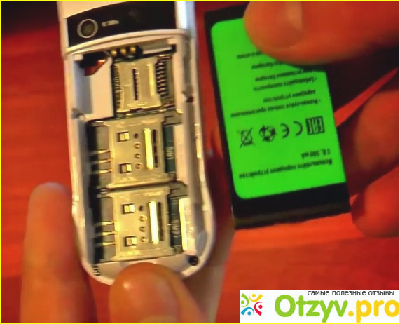 Под аккумулятором телефон имеет два слота под SIM-карты. Карты, хочу заметить, самые обыкновенные, то есть большие, стандартные. Вот так вот, телефончик маленький, а карточки то стандартные. Лично у меня стандартная карта SIM, поэтому мне нормально. Также имеется разъем под micro-SD. Мне нравиться, конечно, тема, что все слоты под симки и карточку памяти как раз вписываются в пространство под аккумулятором, да еще и расположены весьма удобно.