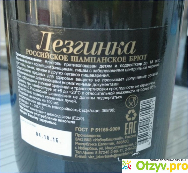 Производители шампанского " Лезгинка" специально не увеличивают его стоимость, чтобы оно было доступно как можно большему количеству потребителей, хотя по своим вкусовым и ароматическим качествам шампанское Избербашского винно - коньячного завода нисколько не уступает даже более дорогим сортам и маркам шампанских вин.